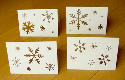 So far, I’ve finished a set of winter snowflake cards that I hand cut with my dear scalpel knife.