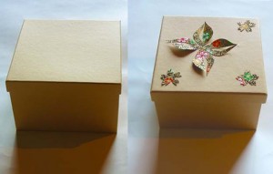 I will show you how to reuse two different boxes (one from dry foods and one from a facial product) and combine them with other materials from home. I will also use some of my leftover chiyogami or washi from previous projects. Most of the decorative paper I use are very small pieces, since I’m what most would call a “pack rat”, and have boxes filled with decorative paper from past gifts, calendars, posters, magazines and even flyers with nice colours or designs.